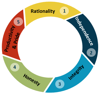 Values are invariably assessed on a 3 point scale. (1)Does not live the values (2)Lives the values & (3)Sponsors the values.