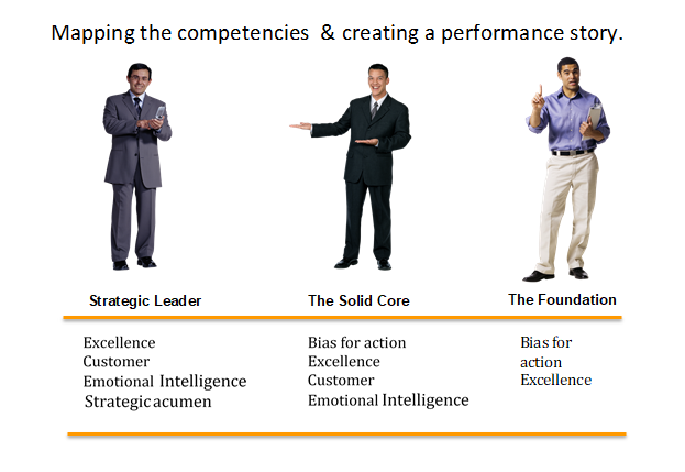 Define different behaviors for each competency for each role. In effect, in the above example, “customer centricity” has different behavior anchors for the Strategic Leader, the Solid Core and the Foundation depending on the contribution which they are required to make and the specific behaviors required to discharge their roles effectively.